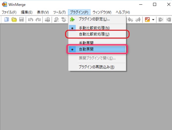 自動比較前処理、自動展開を選択するとプラグインが使用可能になります。